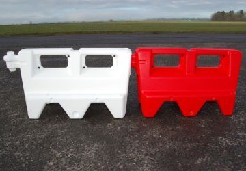 De kunststof rode en witte barriers zijn vervaardigd van gerecycled kunststof en hebben een versterkte wand voor extra stevigheid. Een barrier is hol vanbinnen, waardoor deze licht van gewicht is en eenvoudig naar de juiste plek te tillen of te verslepen is. Eenmaal op de juiste plek, kunnen de barriers in elkaar worden gehaakt om zo een lange rij te vormen.