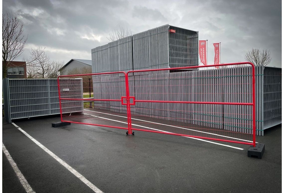 Maak eenvoudig een toegang tot je bouwplaats of evenemententerrein met deze robuuste dubbele toegangsdeur. Met een totale breedte van 7 meter bestaat de deur uit twee afzonderlijk bedienbare delen. Dit geeft flexibiliteit bij het in- en uitrijden van voertuigen of bij het reguleren van de toegang.