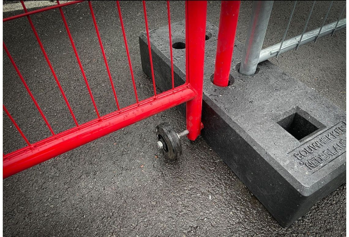Veiligheid: een bouwhekdeur is doorgaans het meest gevoelige onderdeel van tijdelijk hekwerk, doordat er bij het openen en sluiten beweging in de constructie ontstaat. Door bouwhekschoren te plaatsen aan de aangrenzende hekken, versterk je de stabiliteit van het hekwerk. Hiermee voorkom je dat het tijdelijk hekwerk kantelt of vervormt, met name bij harde wind of frequent gebruik.