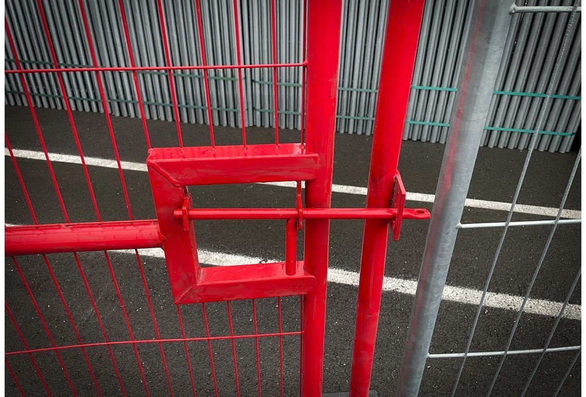 Standaard is de bouwhekdeur voorzien van een degelijke vergrendeling. Door hier een stevig hangslot aan te bevestigen is het terrein na werktijd goed af te sluiten.