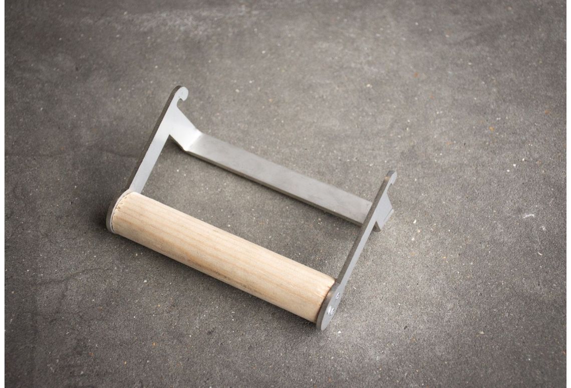 De hekdrager heeft een groot handvat met twee haken. Plaats de haken op de juiste hoogte tussen de draden, zodat je met een rechte rug en gestrekte arm het bouwhek kunt tillen. Zo is het doodeenvoudig om bouwhekken op een ergonomisch verantwoorde manier te tillen en te verplaatsen.
