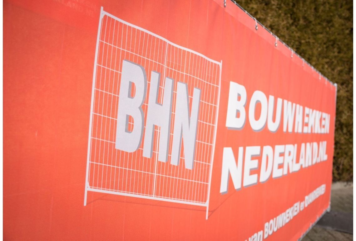 Bouwhekbanner 120 heeft een afmeting van 338 x 100 cm en is perfect passend voor Bouwhek 120. Doormiddel van tie-wraps is de banner eenvoudig op het bouwhek te bevestigen.