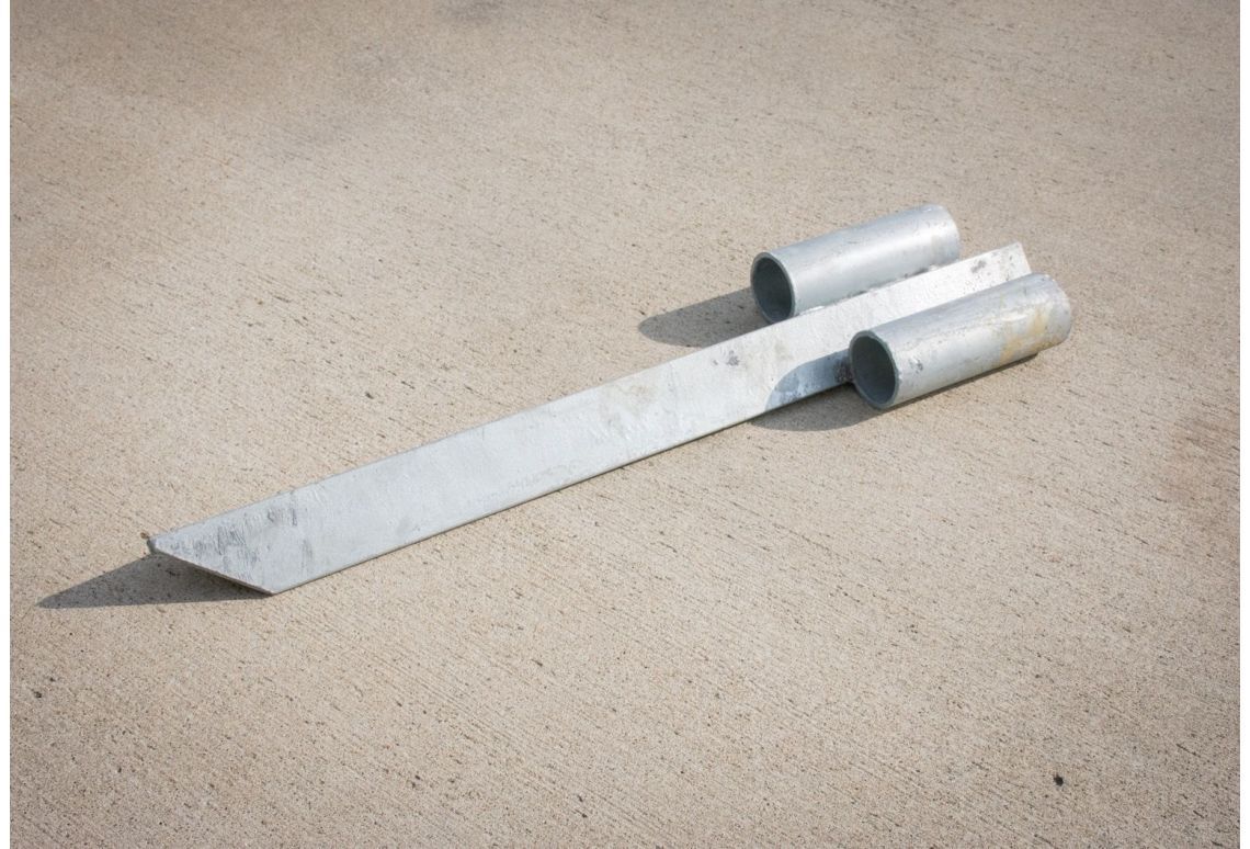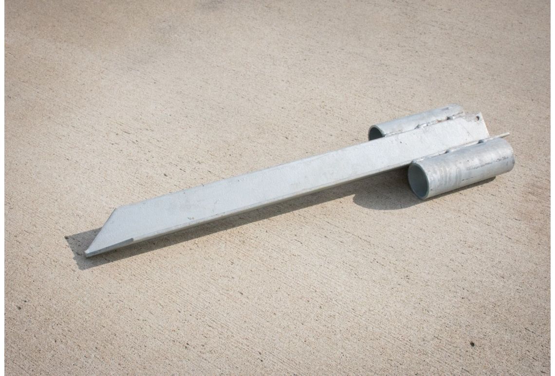 Montage: sla eerst het anker recht de grond in, plaats daarna het bouwhek over de buis aan de bovenkant.