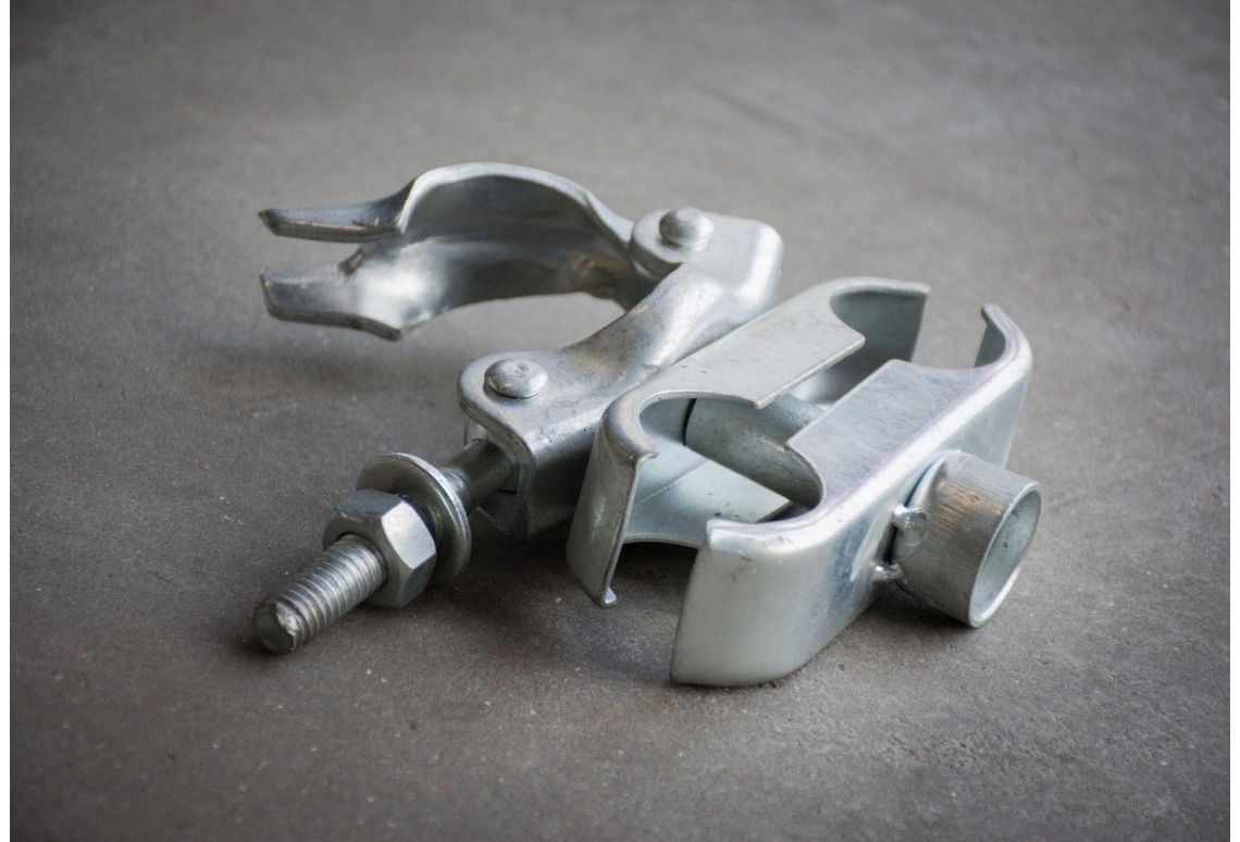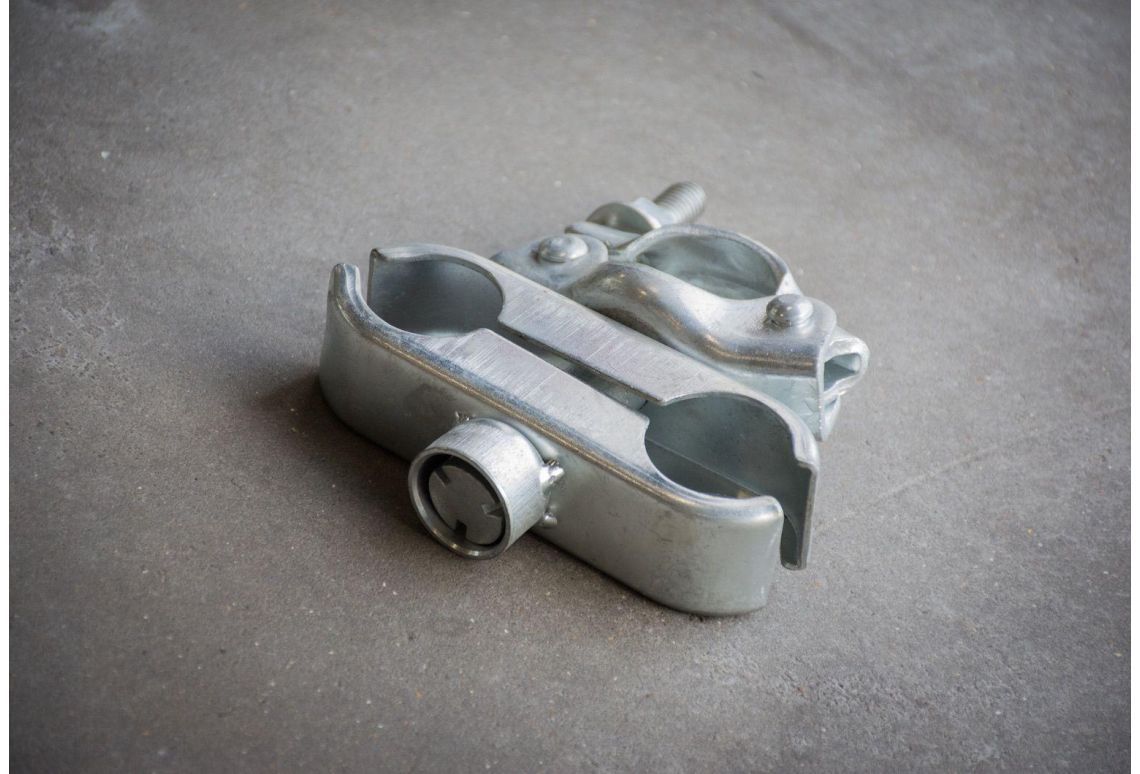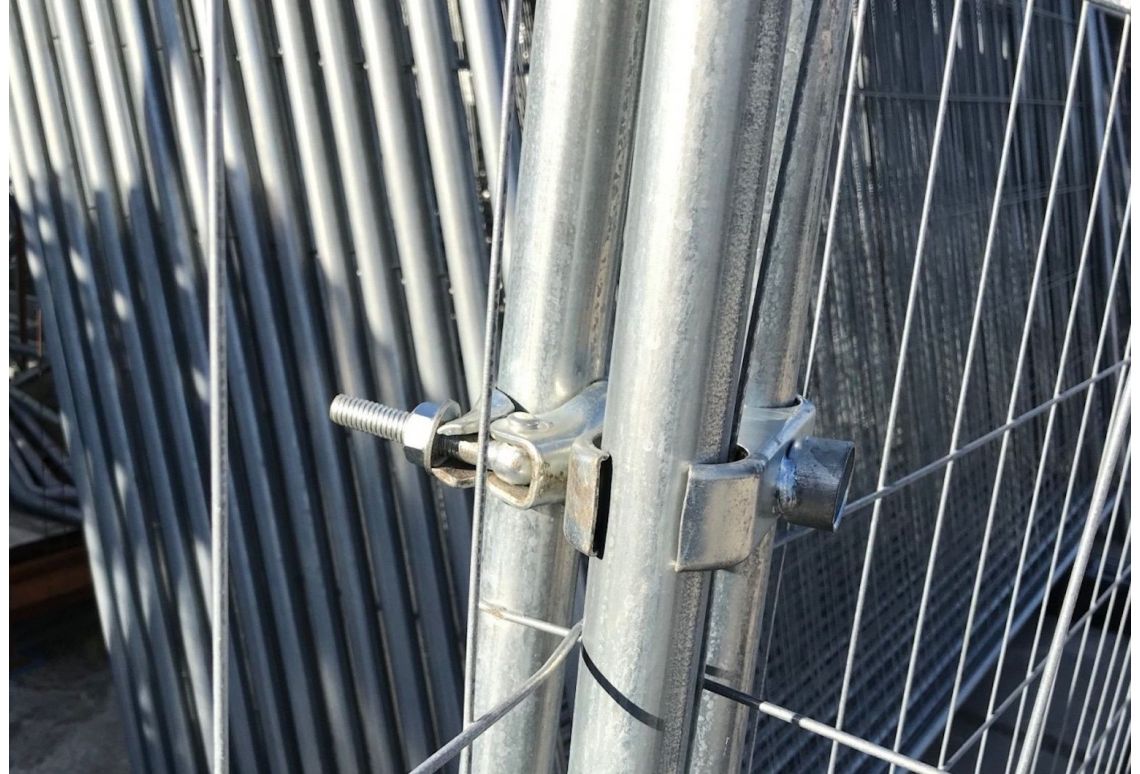 De voorste bouwhekklem is een vaste sluiting waarmee je bouwhekken kunt koppelen. De achterste sluiting is geschikt voor meerdere type buizen omdat de diameter verstelbaar en draaibaar is. Hierdoor kun je de achterste sluiting ook prima gebruiken om ander hekwerk te koppelen aan je bouwhekken.