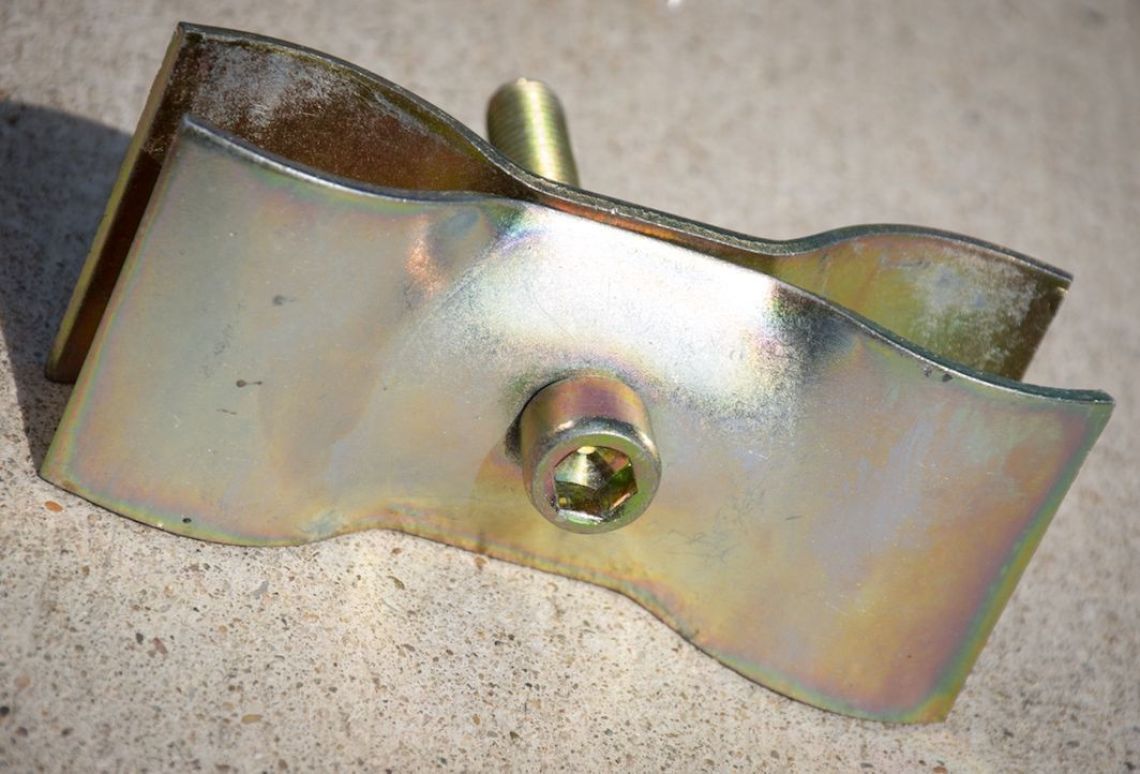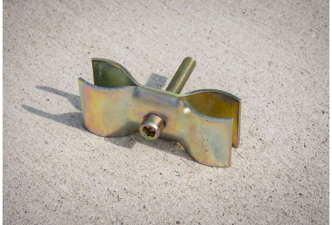 Bij deze bouwhekklem is de moer vastgelast aan de bout, zodat deze niet van elkaar af kunnen vallen. Dat is erg handig als de bouwhekklemmen worden gebruikt in bijvoorbeeld de verhuur.