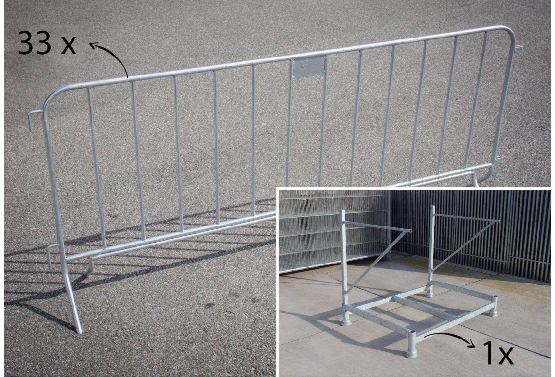 Met deze set van 33 dranghekken kun je een tijdelijke afzetting creëren van ongeveer 85 meter.