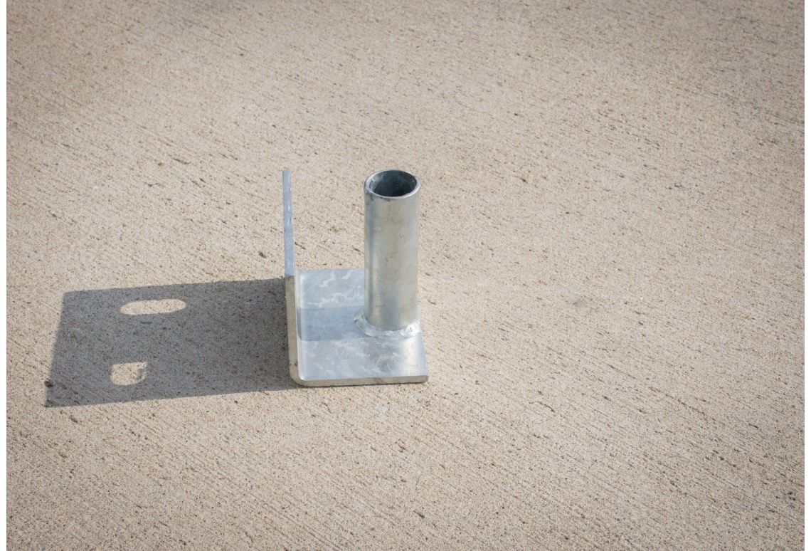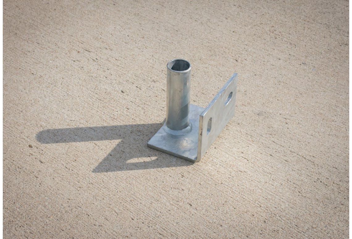 De muurbeugel wordt boven in het hek geplaatst en is voorzien van 2 slobgaten, waarmee de muurbeugel eenvoudig op de muur gemonteerd kan worden.