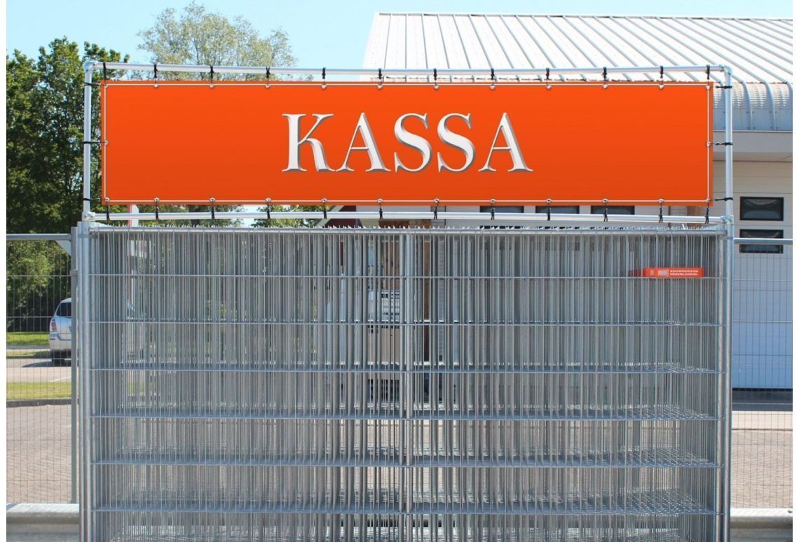 Door gebruik te maken van een opzet banner kun je onder andere (festival)bezoekers de weg wijzen en reclame maken. Het voordeel van een kant-en-klaar frame met bouwhekdoek is dat het op elk standaard model bouwhek (350 x 200 cm) past. Deze opzet banner is inclusief frame en 32 spanners met spinhaken