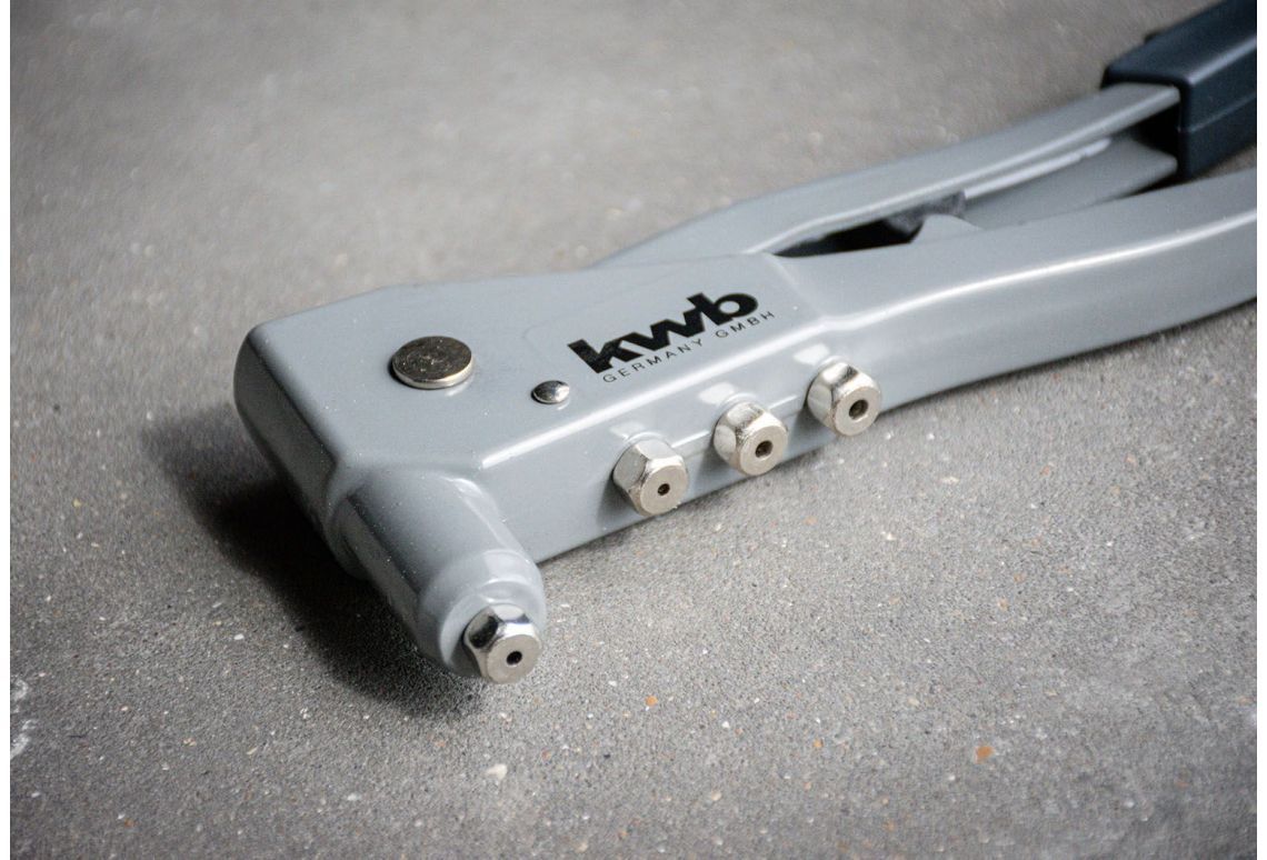 Gebruik deze handige popnageltang om bordjes, zoals Logo bordje | 196 x 80 mm en Logo Bordje | 297 x 100 mm, vast te maken op de bouwhekken met popnagels