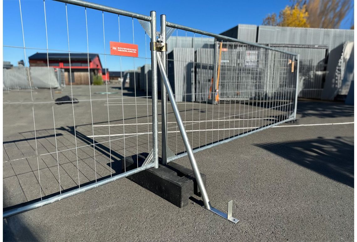Veiligheid: voor optimale stabiliteit van een tijdelijke afzetting adviseren wij om elke 1 tot 3 bouwhekken van een schoor te voorzien. Zo staat jouw hekwerk altijd stevig, onder alle omstandigheden.