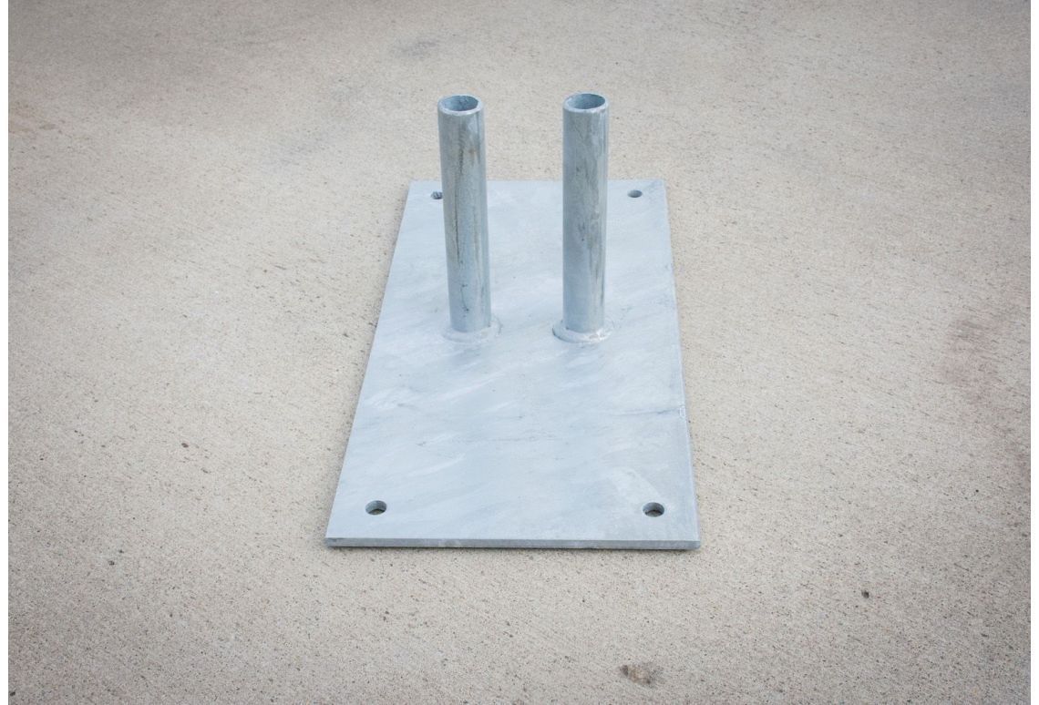 Wanneer tijdelijk hekwerk moet worden geschoord en de ondergrond hiervoor minder geschikt is, biedt deze grote voetplaat de ideale oplossing. De voetplaat fungeert als verbindingsstuk tussen de schoor en de ballast, zoals een betonvoet of kunststof voet, en zorgt zo voor een stabiele constructie.