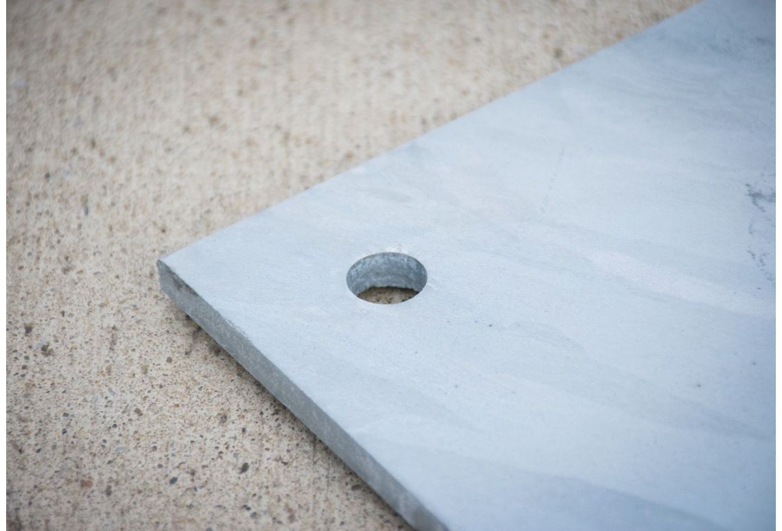Het robuuste ontwerp van deze voetplaat maakt hem geschikt voor uiteenlopende toepassingen, van bouwplaatsen tot evenementen, en biedt hij extra zekerheid bij windbelasting of intensief gebruik. Dankzij de vier bevestigingsgaten kan de voetplaat eenvoudig en stevig aan de ondergrond worden verankerd met Fischer FBN II bouten.
